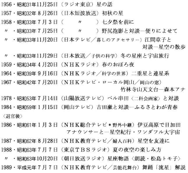 その後間もなく、日本放送のラジオの対談の相手にとよび出された。また私自身のプラネタリウムでの講演の時に出会い、生前お目にかかったのはこの三度きりである。やがて私は岡山県の山奥の観測所に赴任し、以後ハガキの文通がはじまり、昭和五十二年に亡くなられるまでに三百通を超えるハガキが岡山に届いている。」