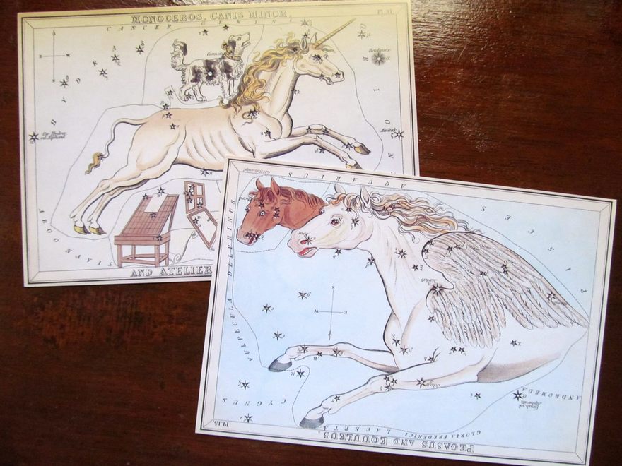 馬の星座といえば、ふつうはぺガスス座とこうま座、それにいっかくじゅう座あたりでしょう。ちょっとひねれば、ケンタウルス座やいて座も、部分的に馬といえば馬です。